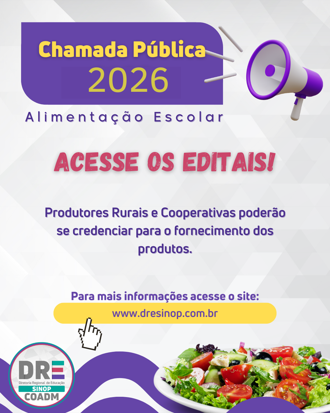 Editais para Pregão Presencial e Chamada Pública da Alimentação Escolar 2025 A Diretoria Region ...