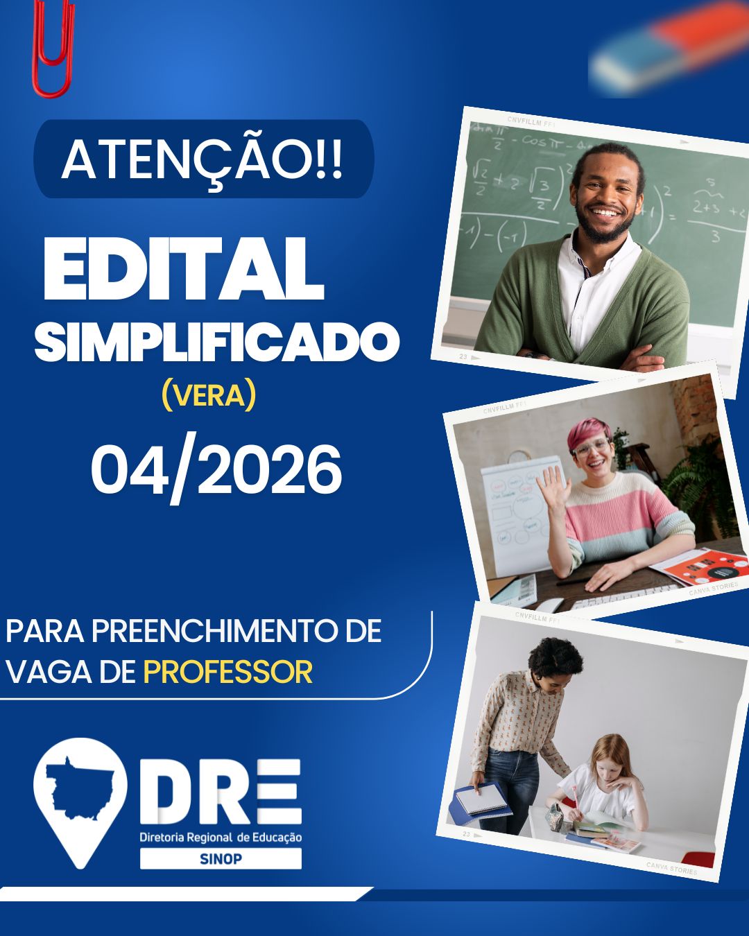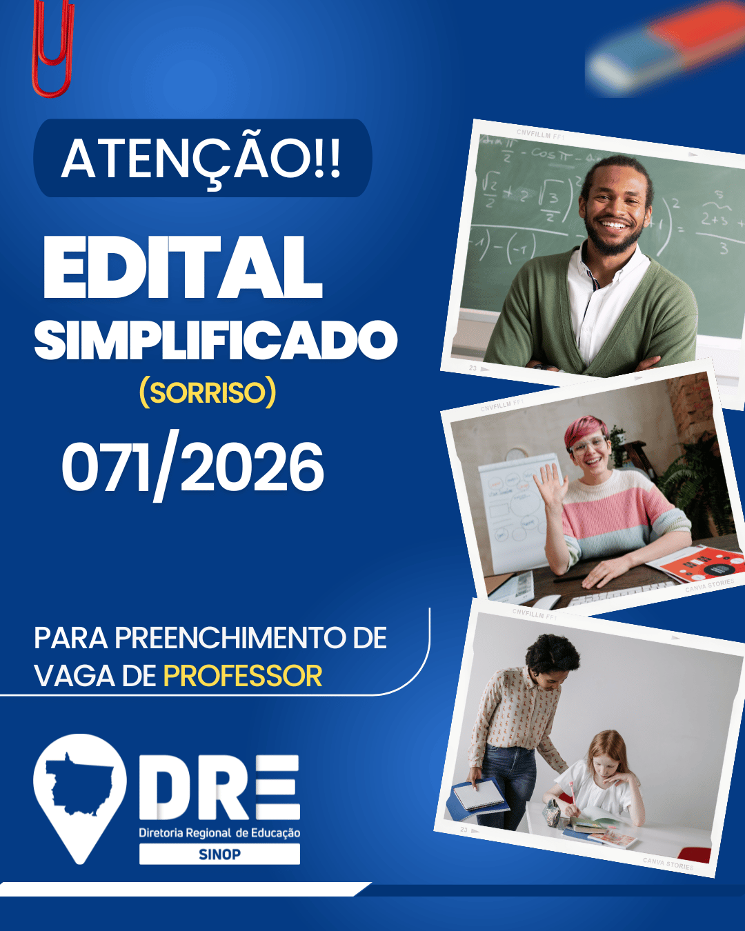 Processo Seletivo para Recomposição de Quadro DRE Sinop - EDITAL Nº 199/2024