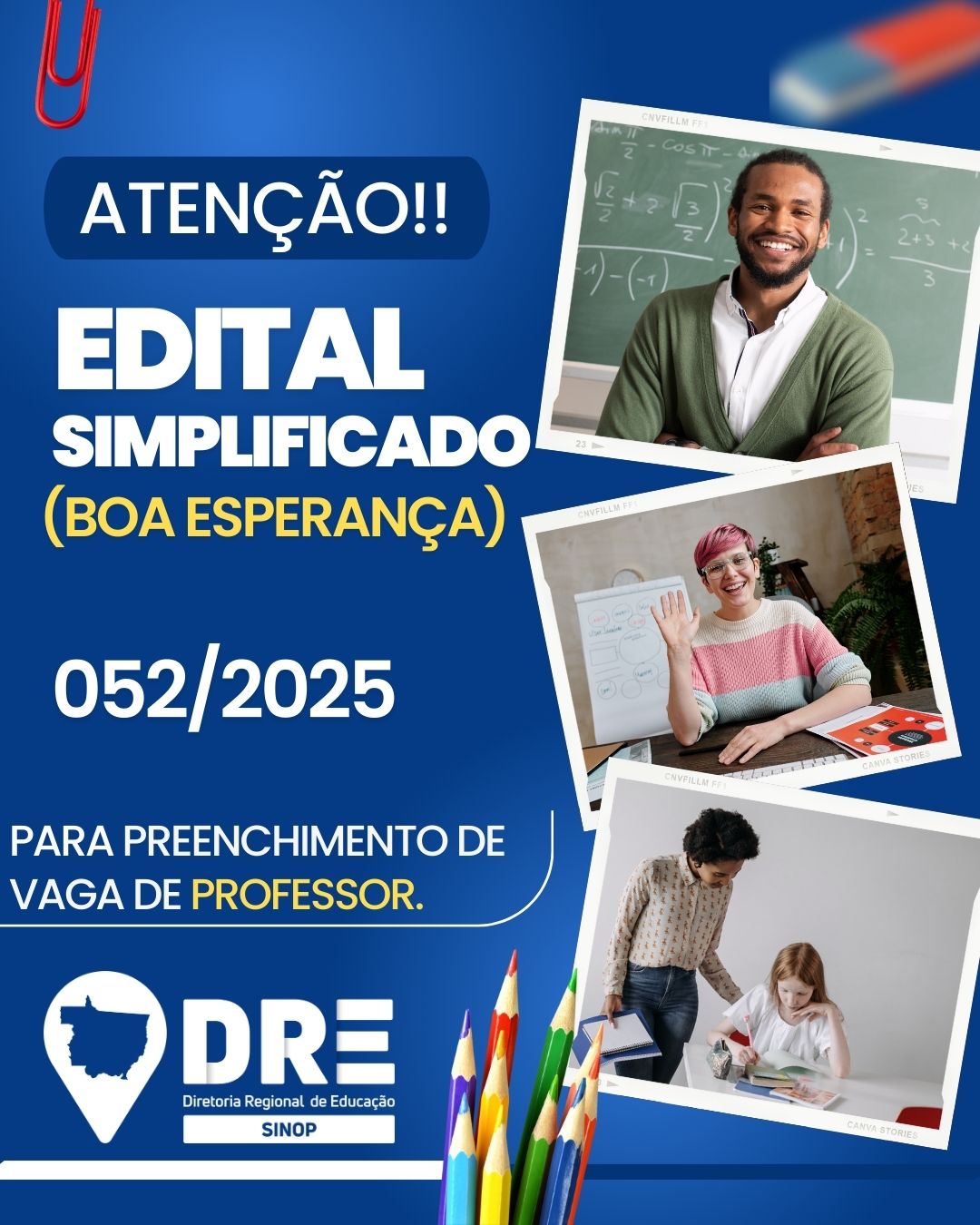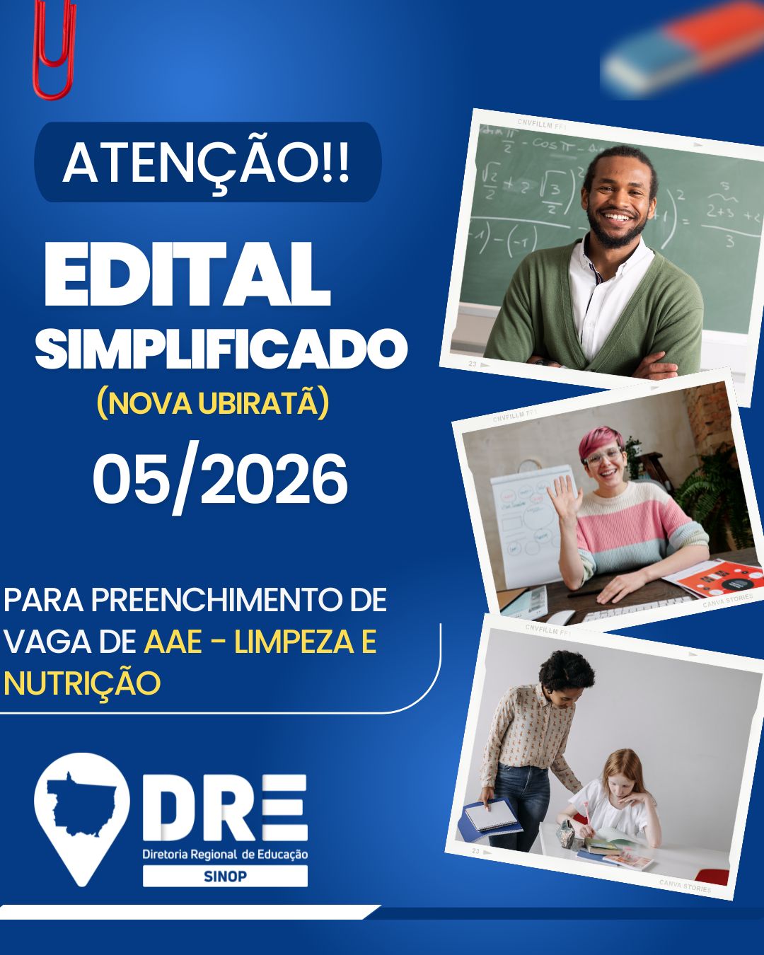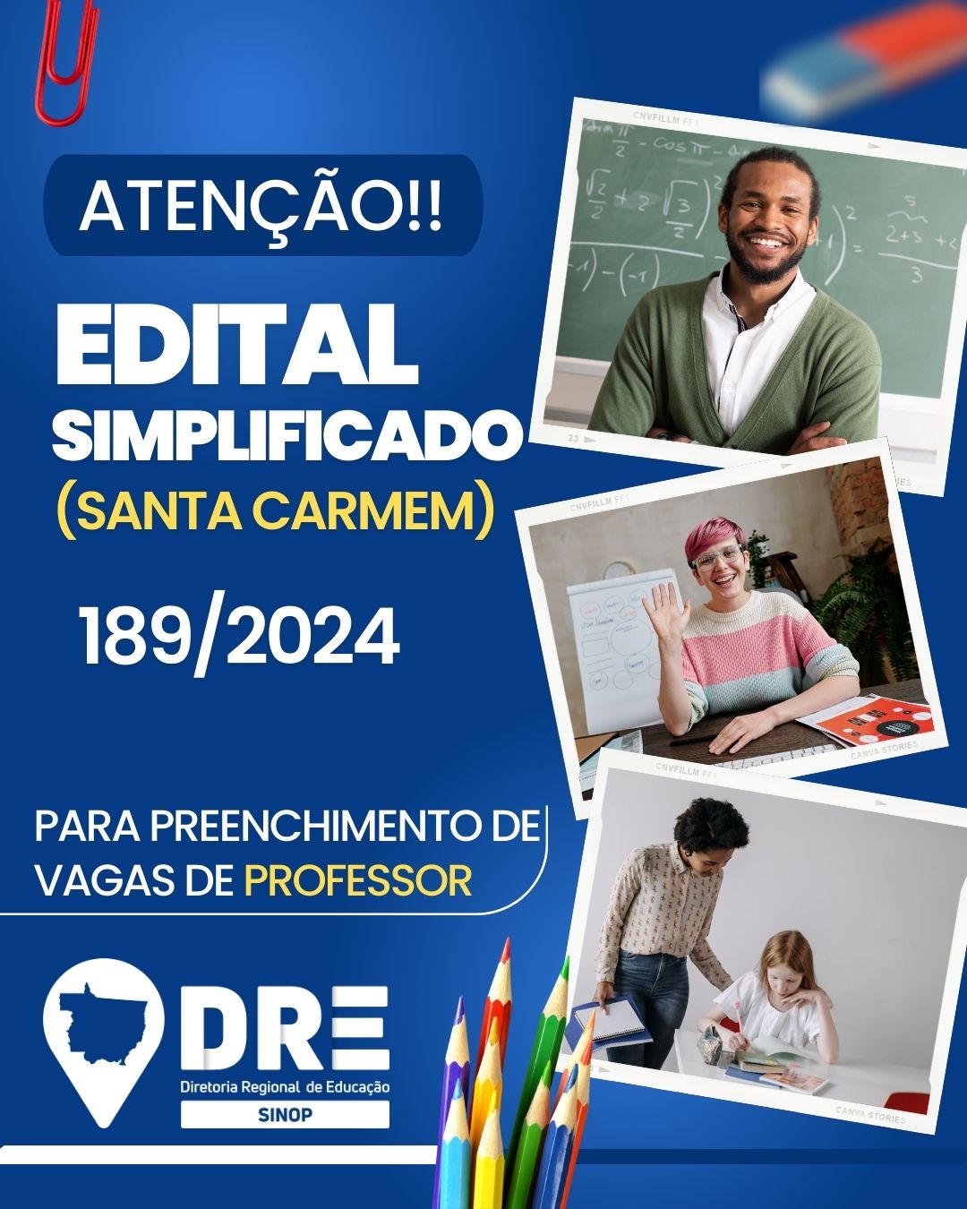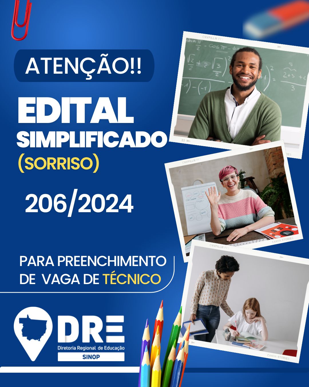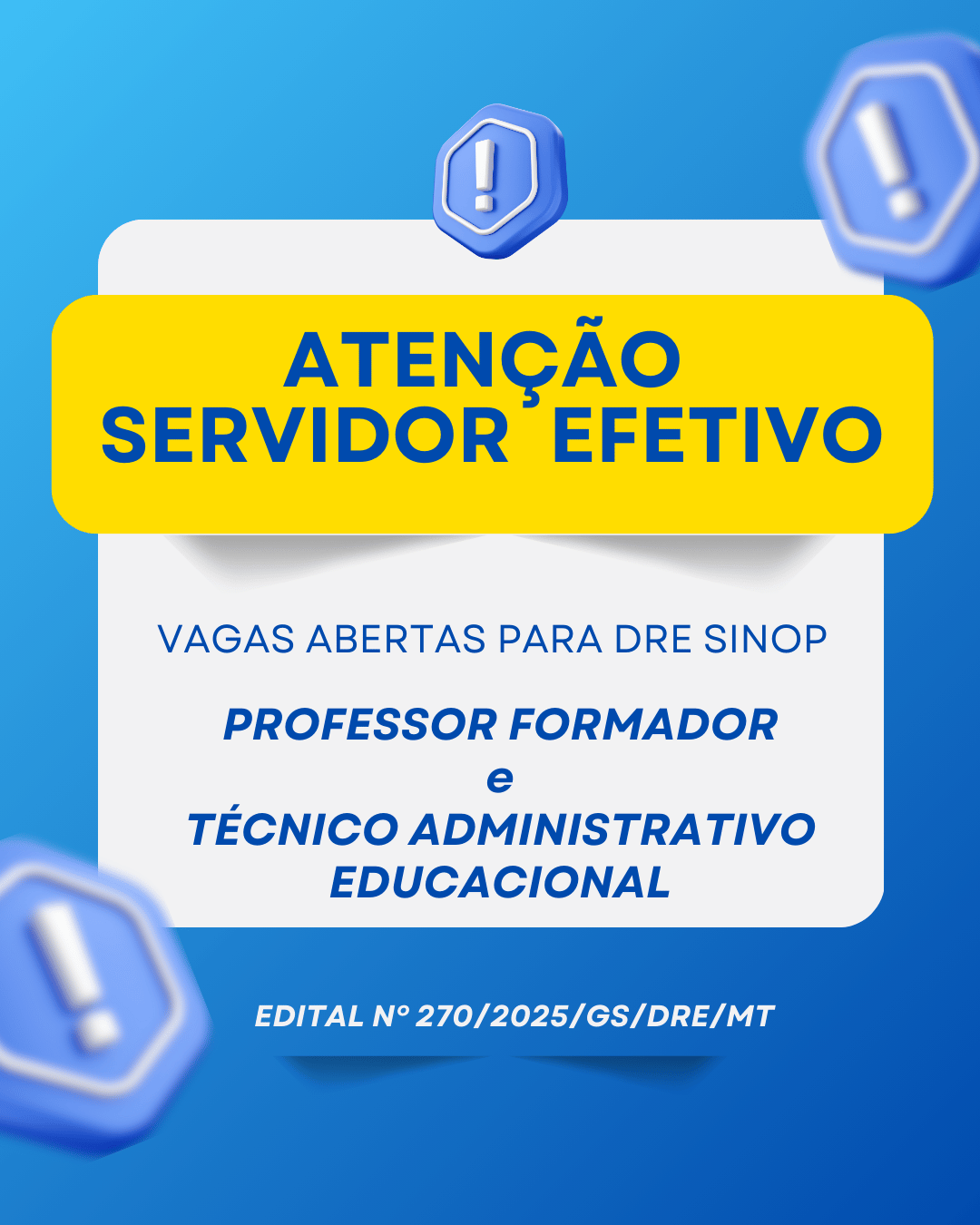 Processo Seletivo para Recomposição de Quadro DRE Sinop - EDITAL Nº 199/2024