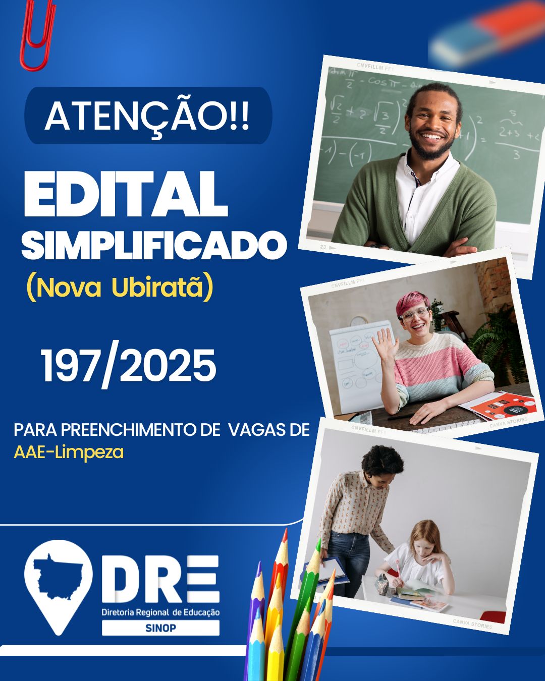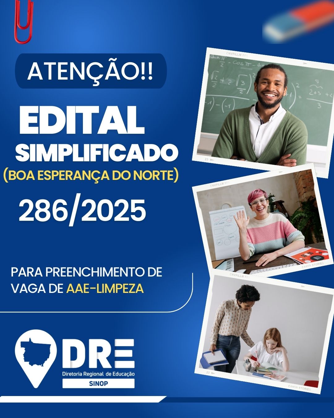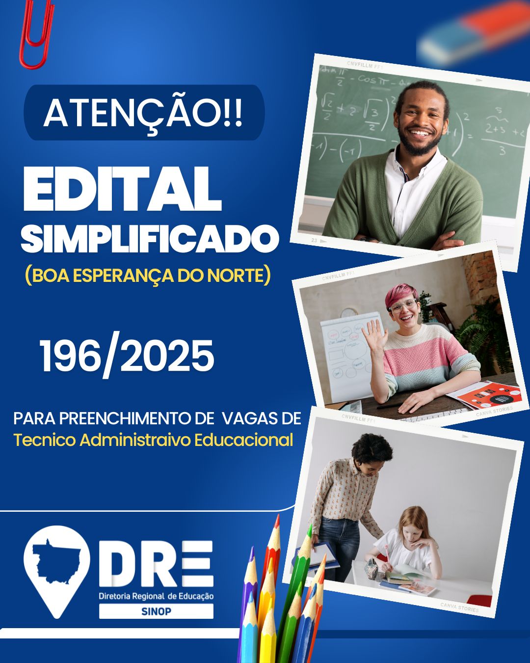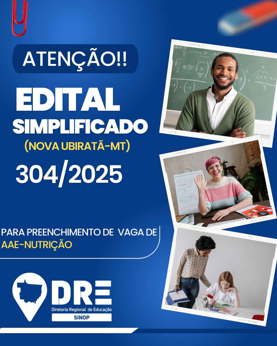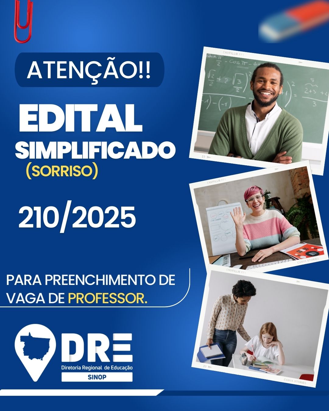 Processo Seletivo para Recomposição de Quadro DRE Sinop - EDITAL Nº 199/2024