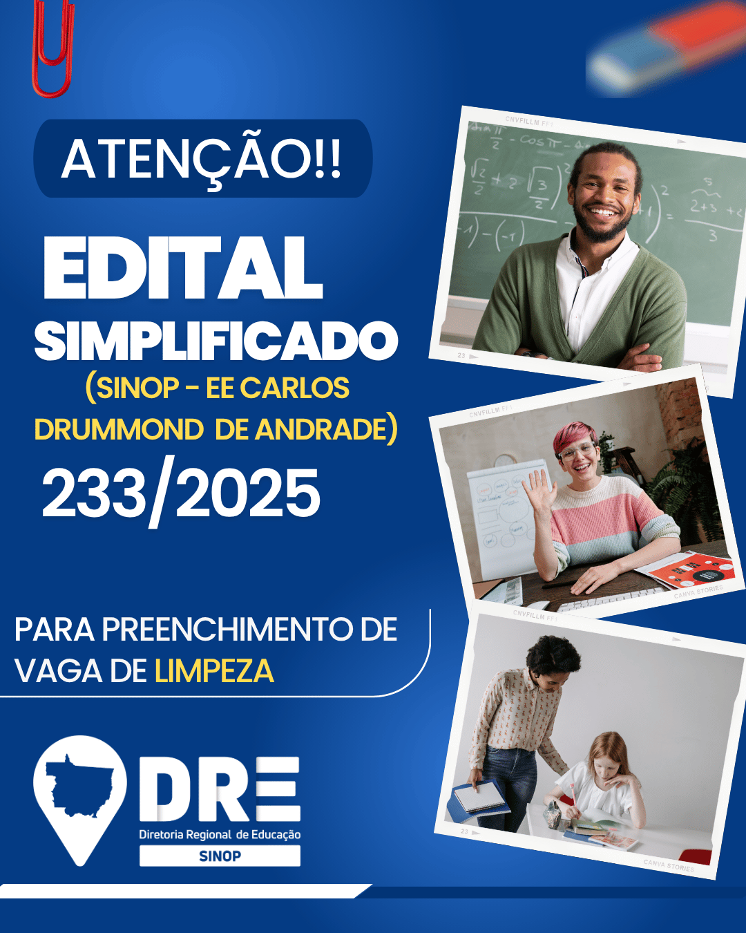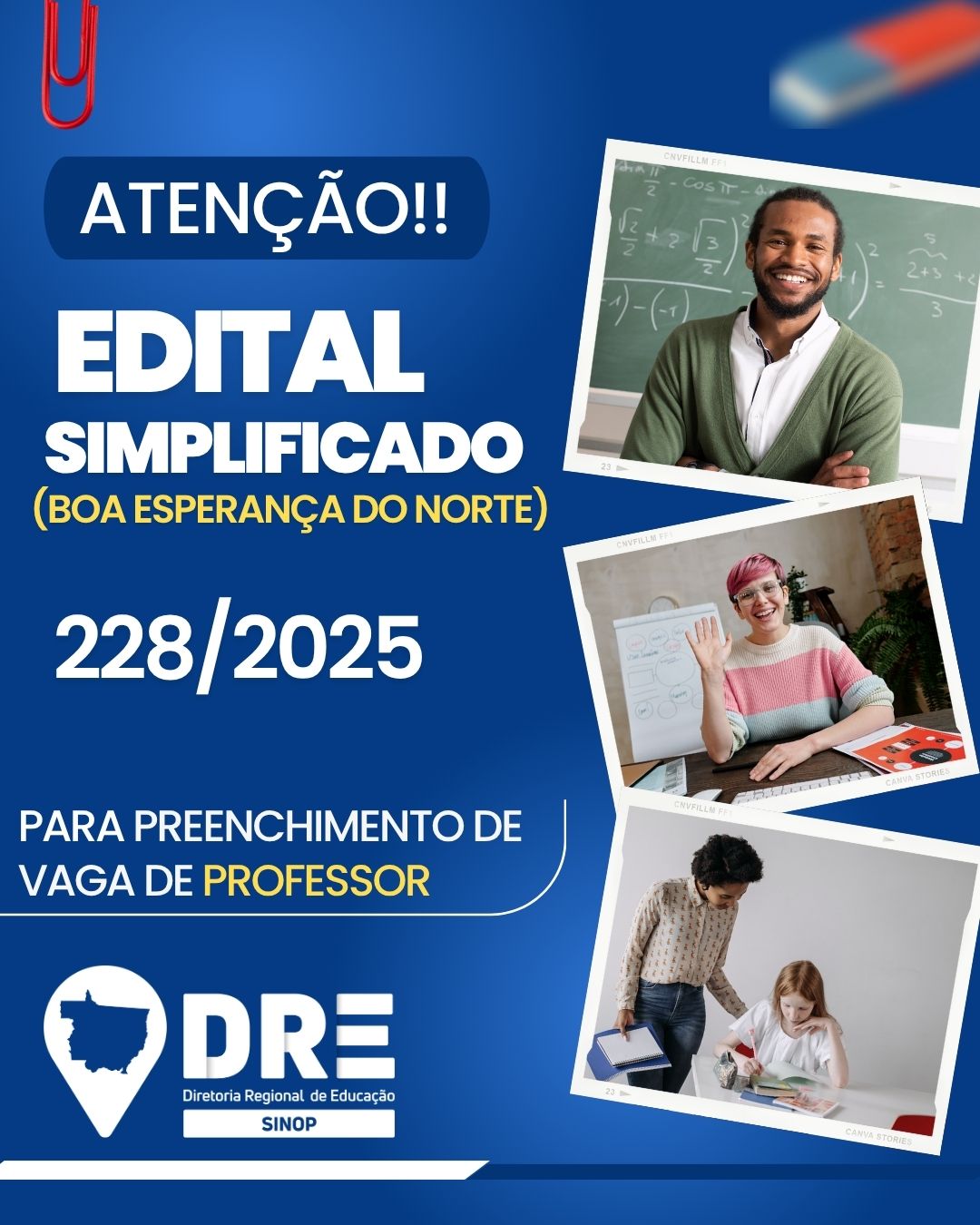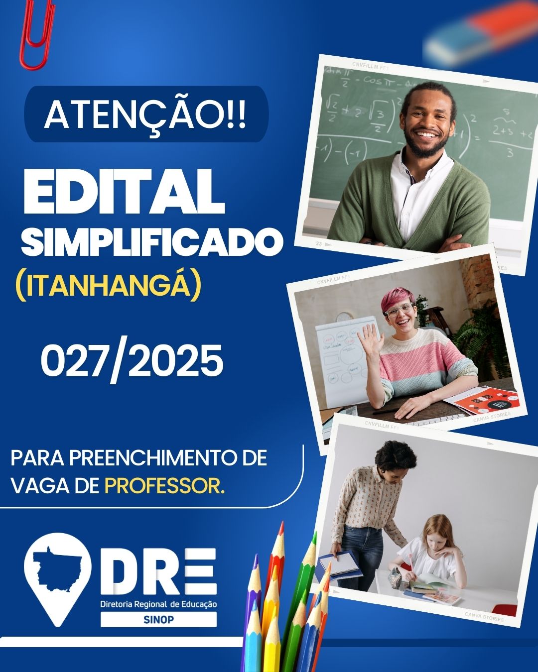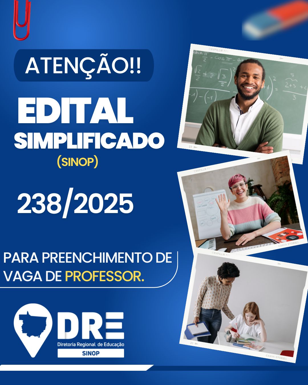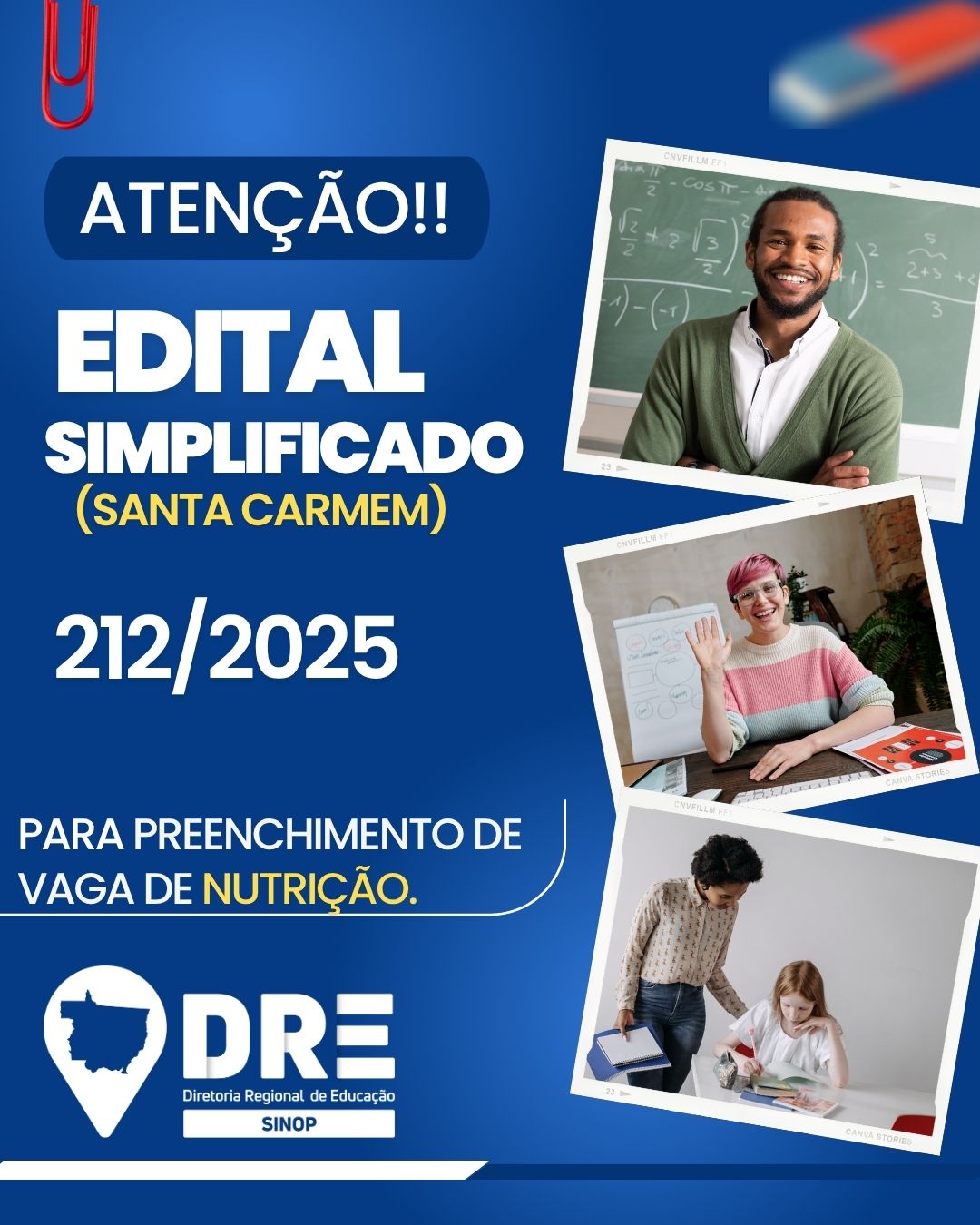 Processo Seletivo para Recomposição de Quadro DRE Sinop - EDITAL Nº 199/2024
